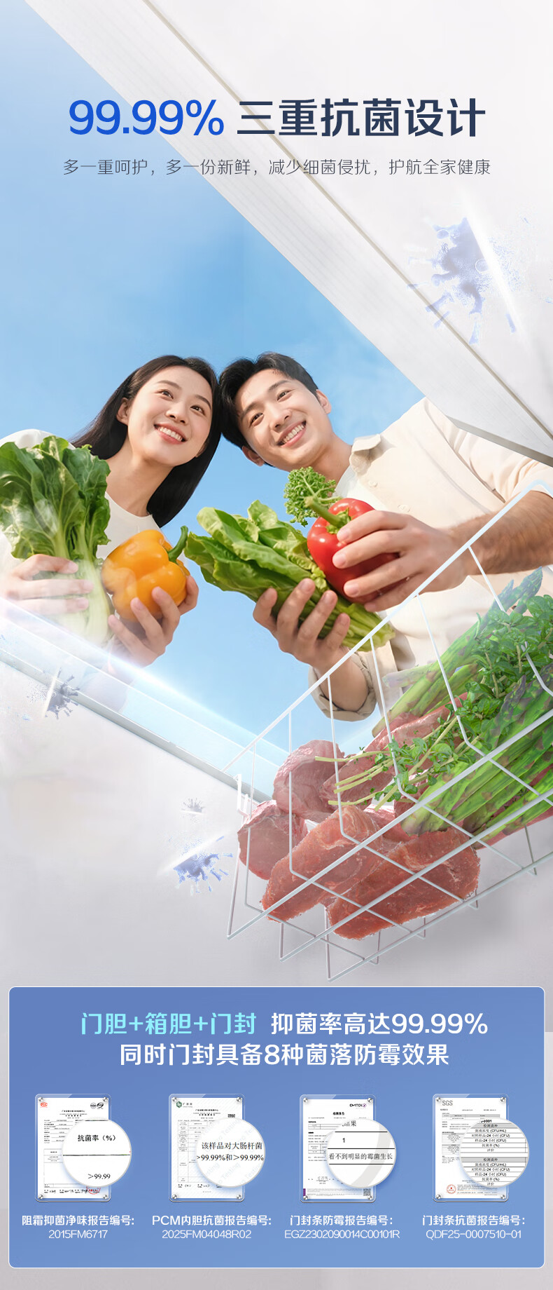 美菱(MeiLing)【离子净】冰箱210升三门三开门家用小型冰箱软冷冻小户型超节能省电节能租房国家补贴电冰箱 BCD-210L3CR2X