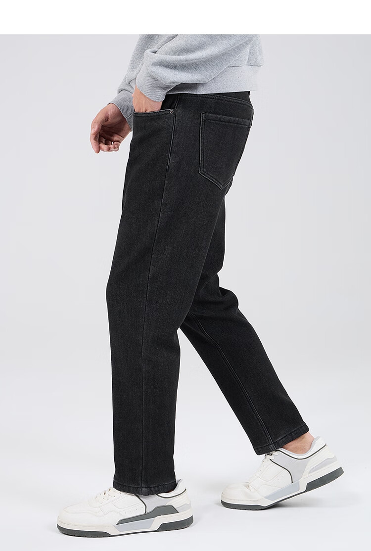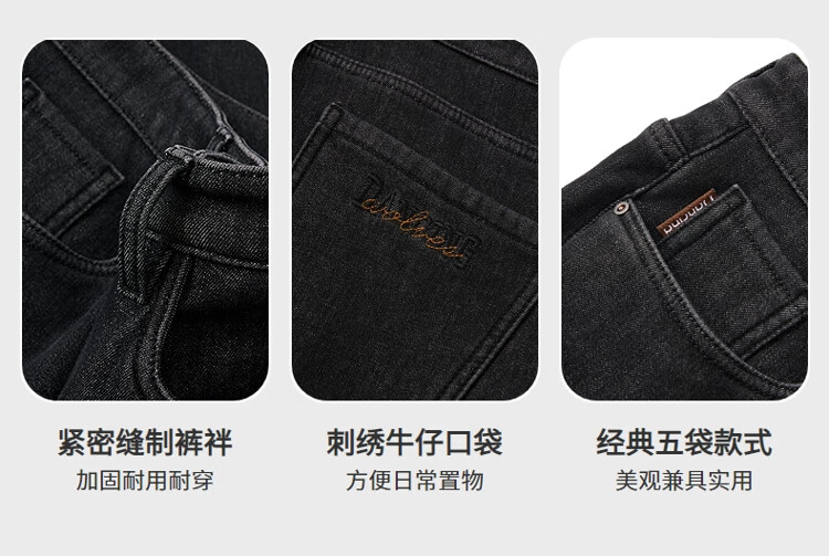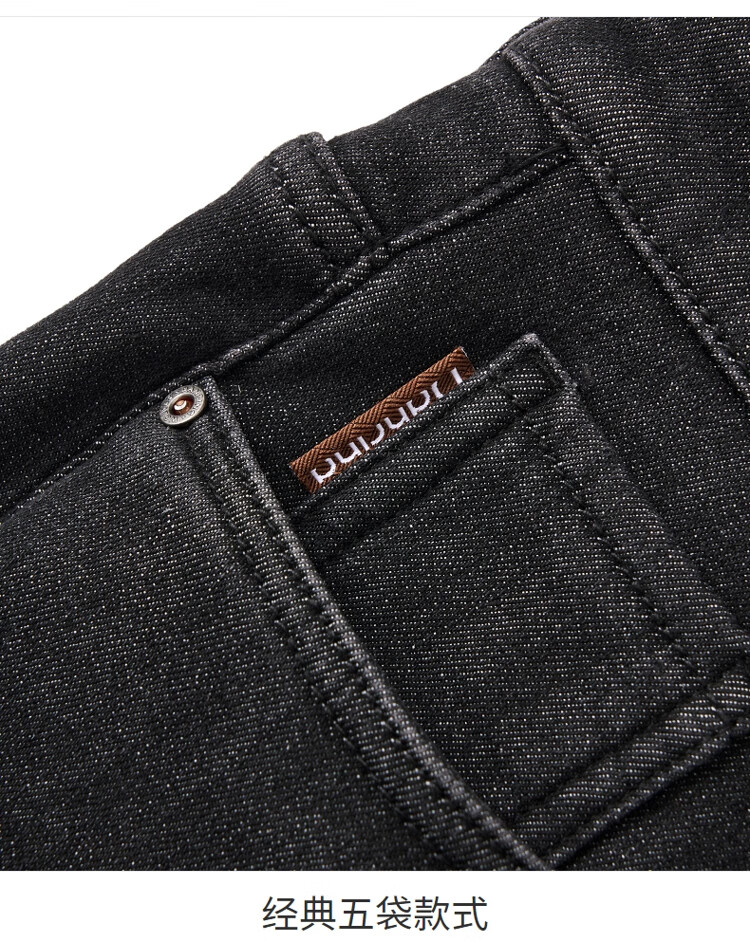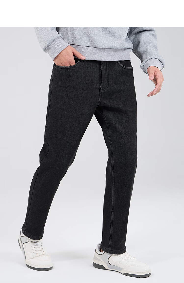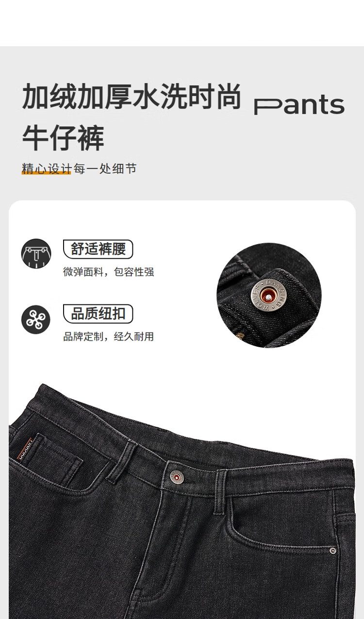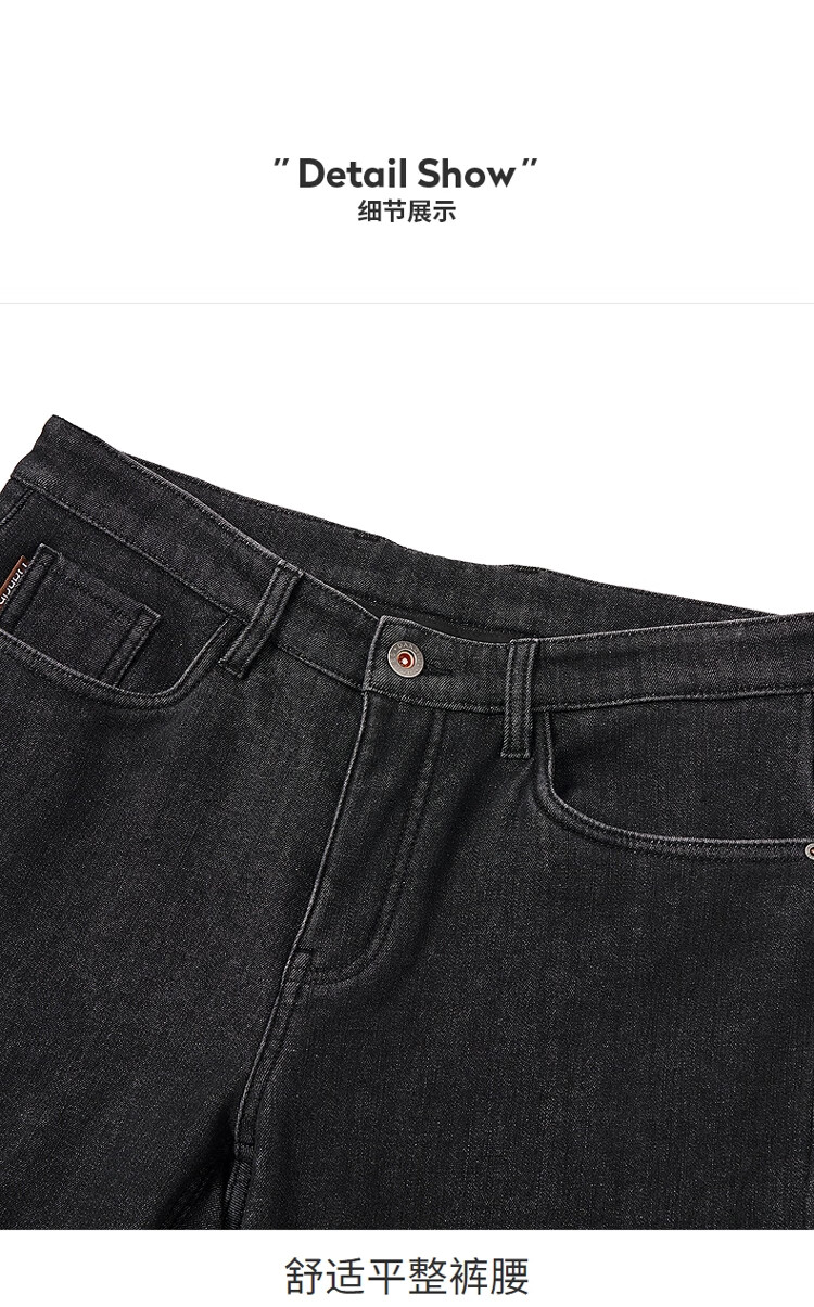 吉普(JEEP)牛仔裤男士秋冬季高端直筒休闲弹力加厚长裤子男 黑灰色 32