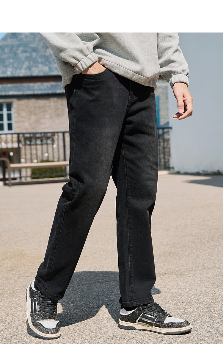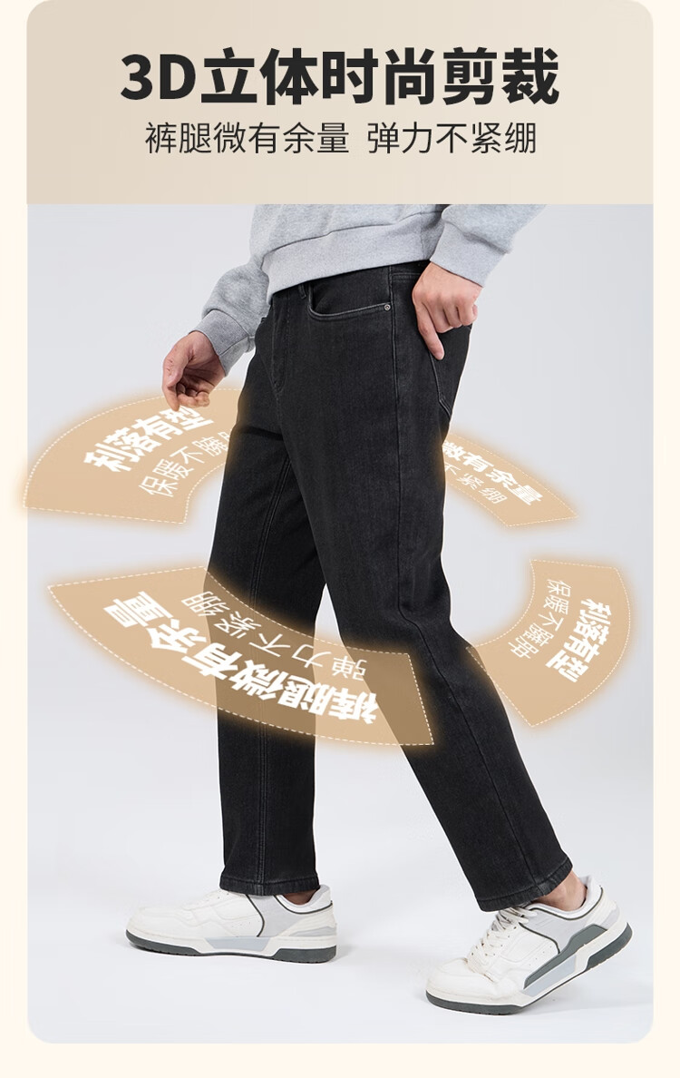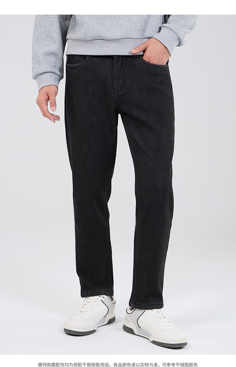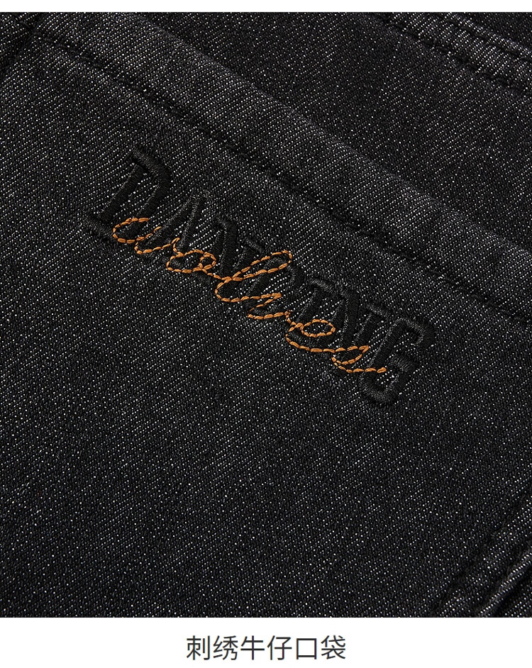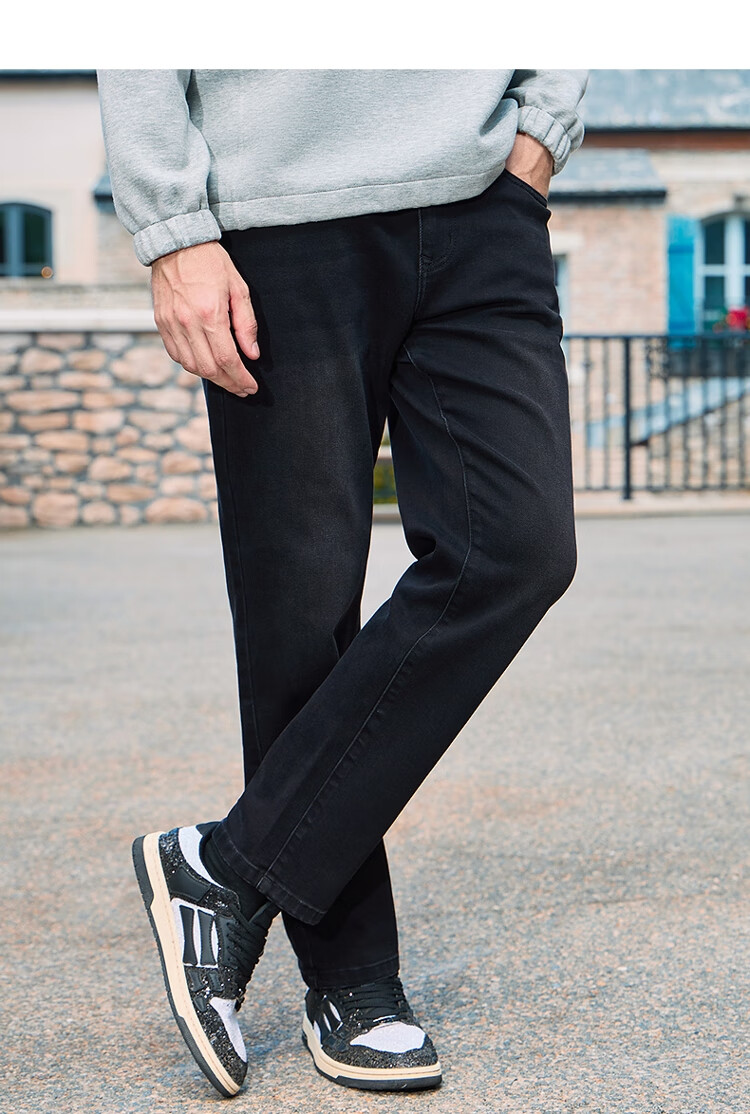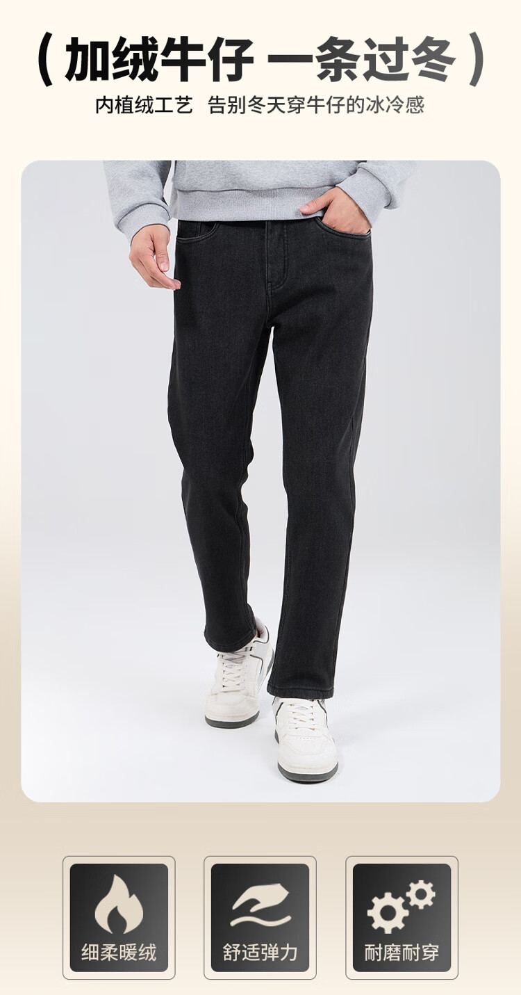 吉普(JEEP)牛仔裤男士秋冬季高端直筒休闲弹力加厚长裤子男 黑灰色 32