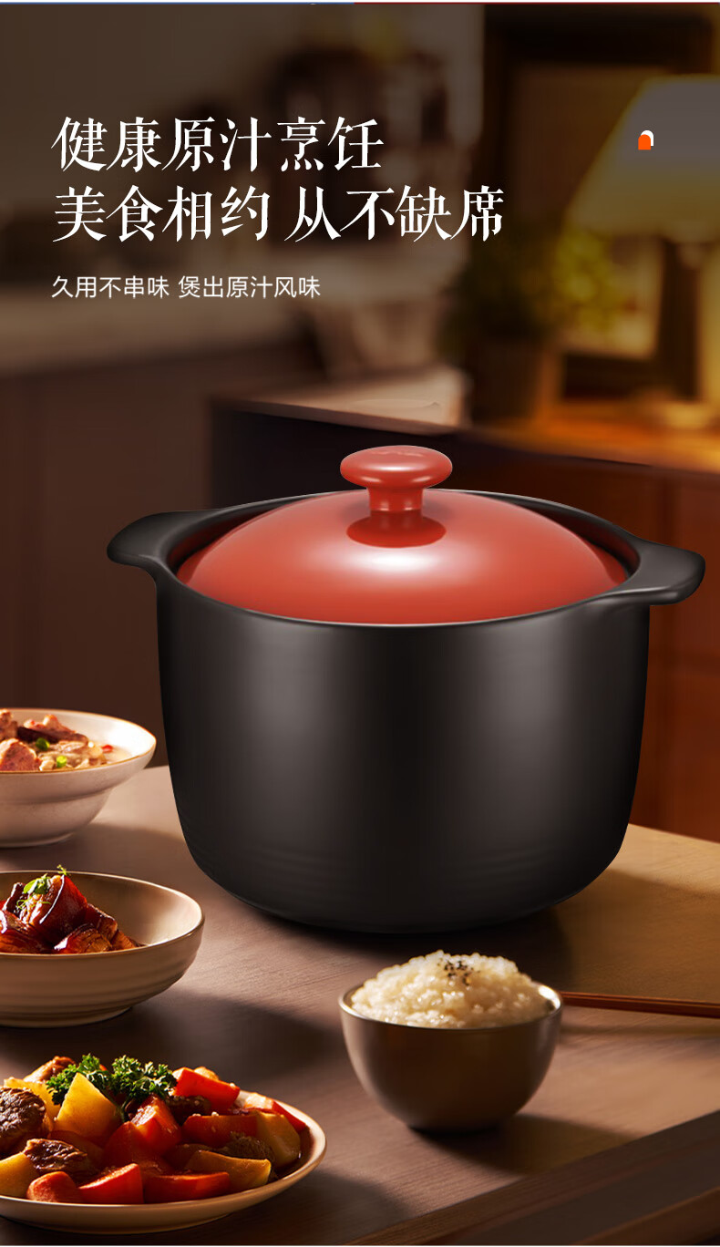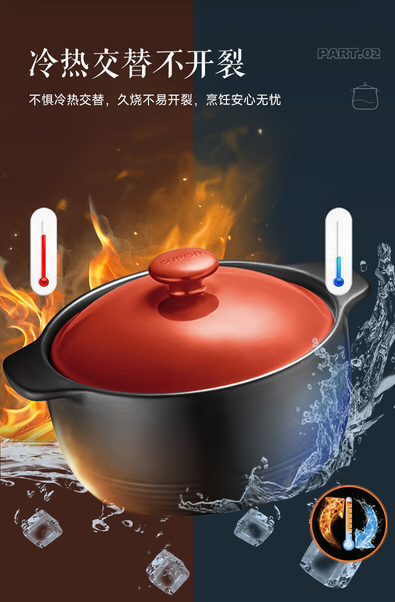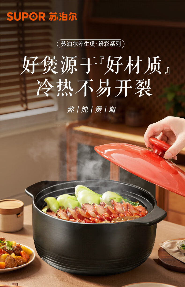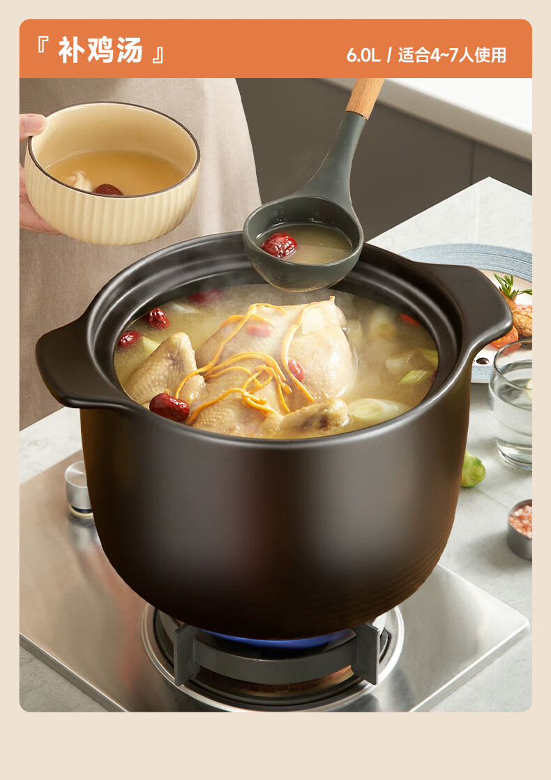 苏泊尔(SUPOR)砂锅煲汤锅陶瓷炖汤煲沙锅炖锅煮粥煲家用养生瓦煲瓦罐燃气灶专用 大家庭享用 可炖整鸡 6L