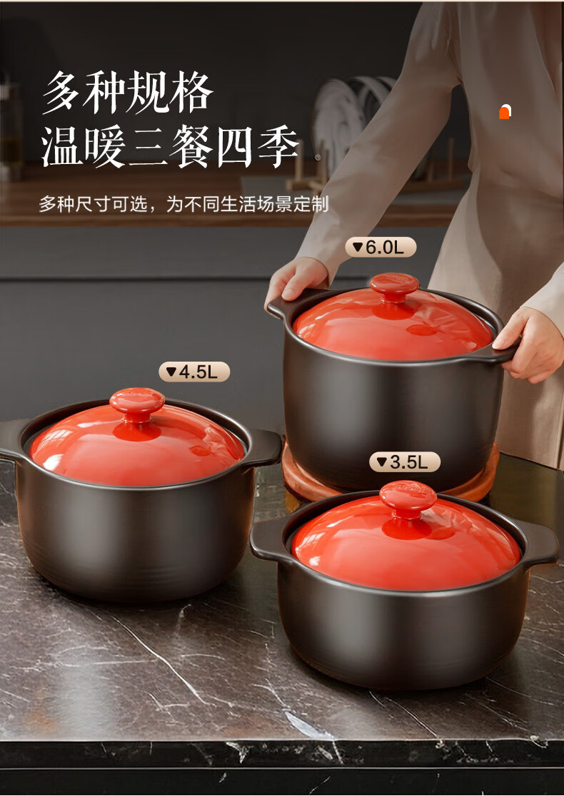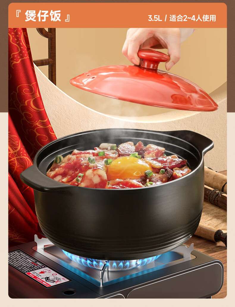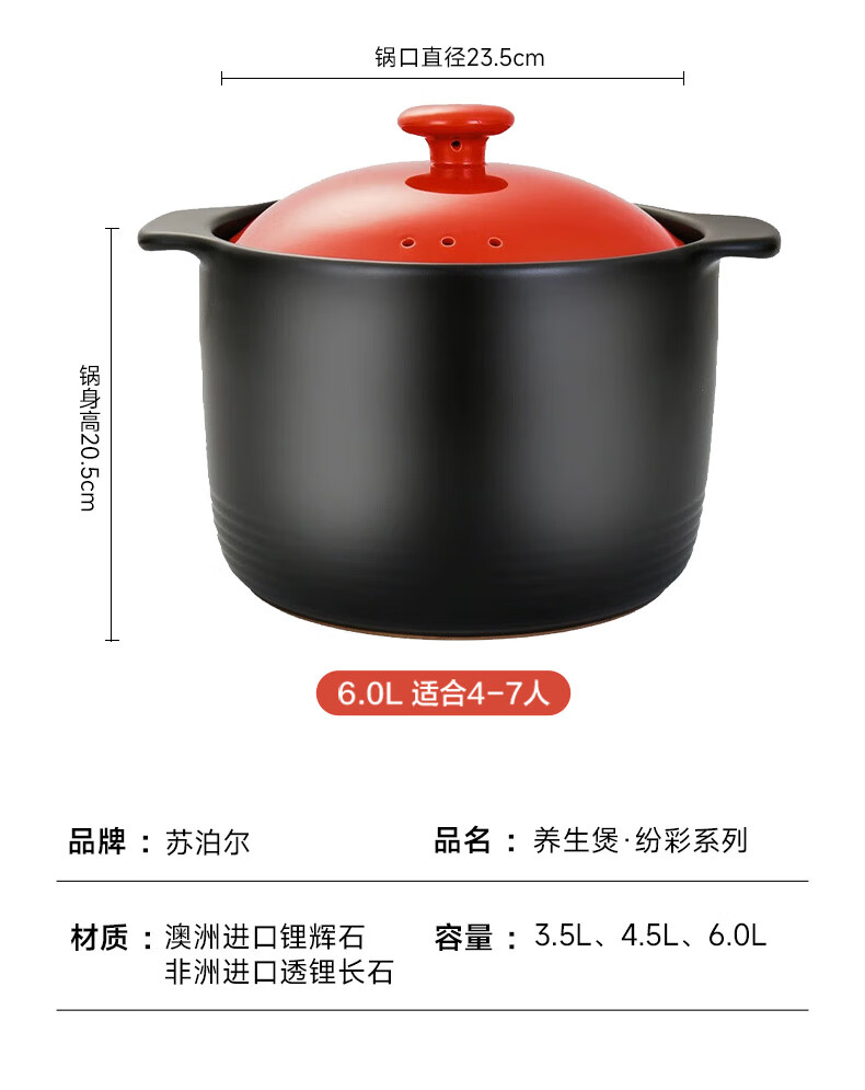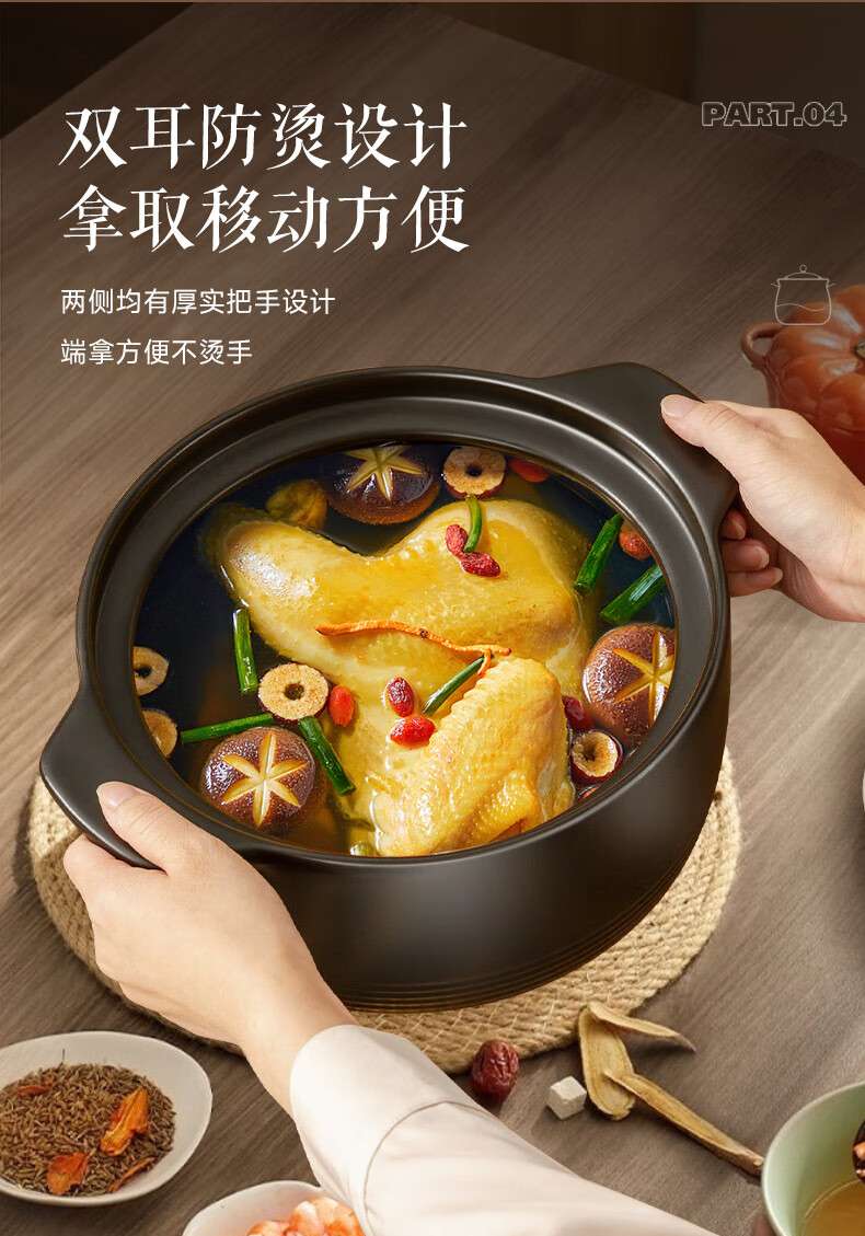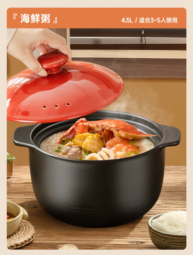 苏泊尔(SUPOR)砂锅煲汤锅陶瓷炖汤煲沙锅炖锅煮粥煲家用养生瓦煲瓦罐燃气灶专用 大家庭享用 可炖整鸡 6L