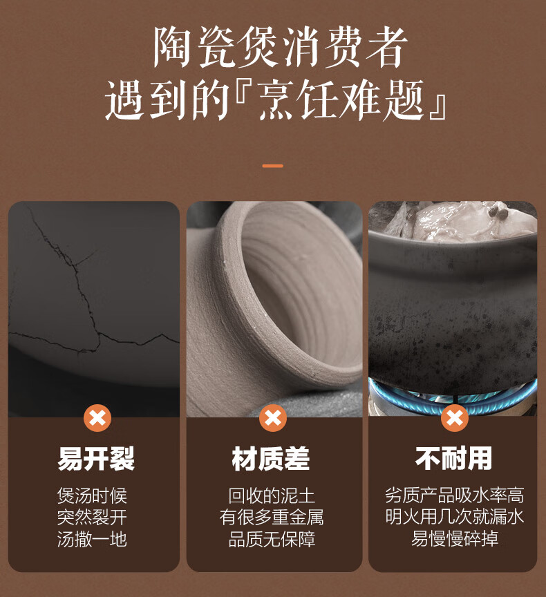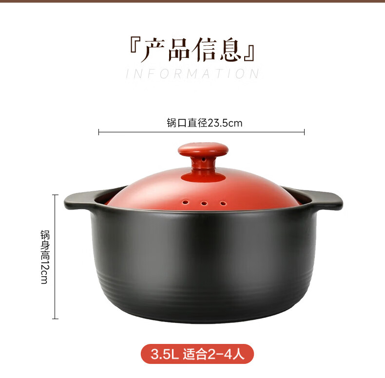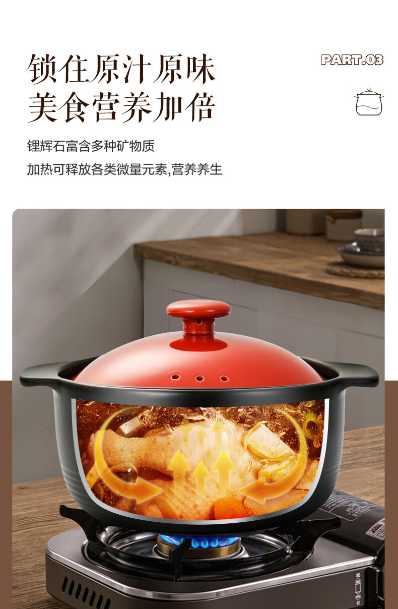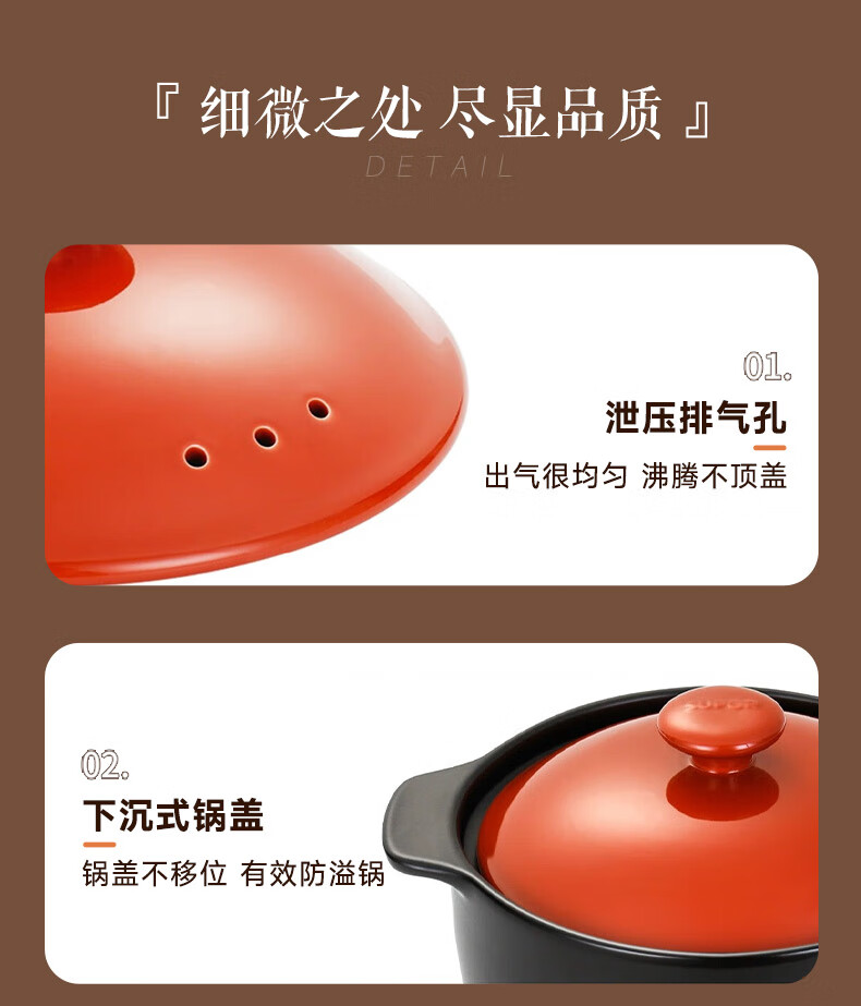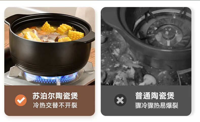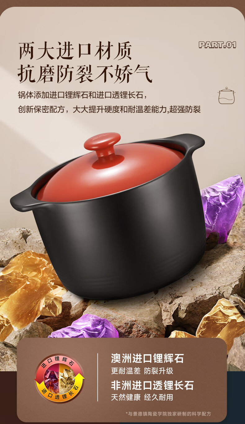 苏泊尔(SUPOR)砂锅煲汤锅陶瓷炖汤煲沙锅炖锅煮粥煲家用养生瓦煲瓦罐燃气灶专用 大家庭享用 可炖整鸡 6L