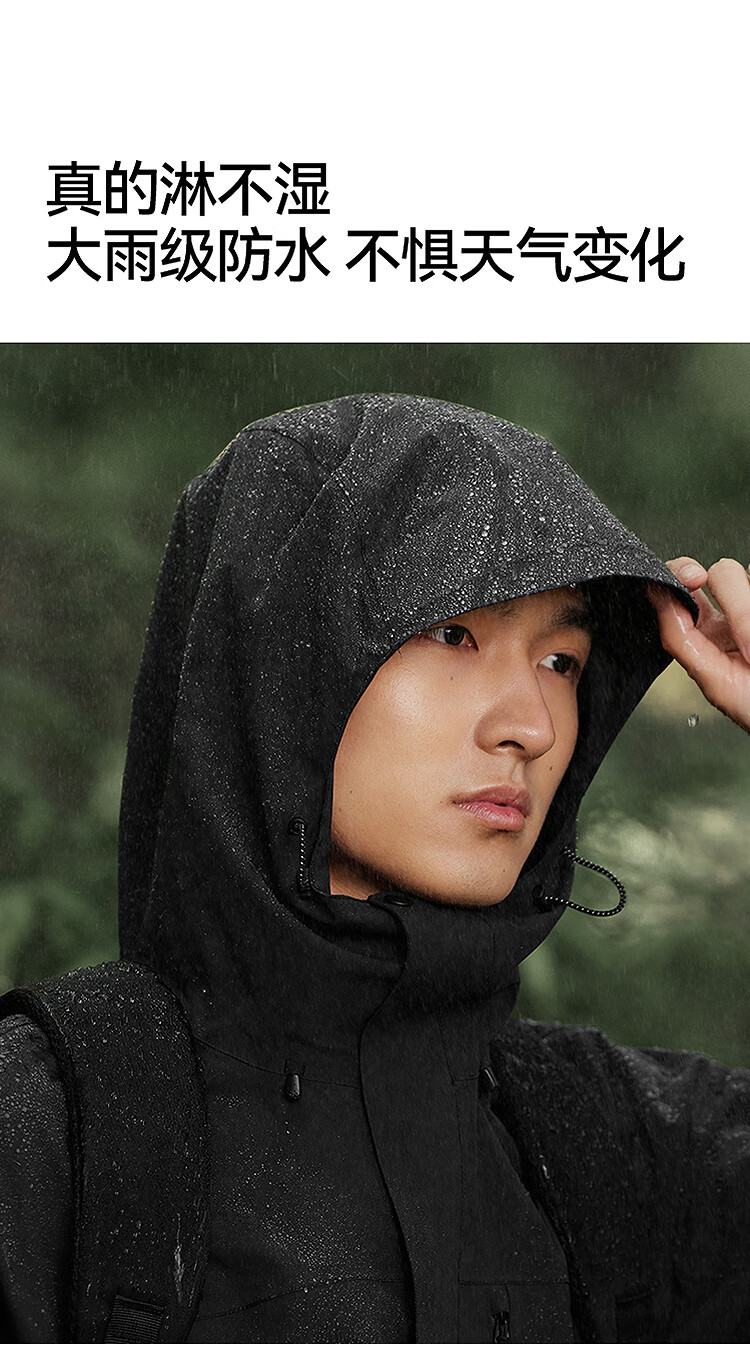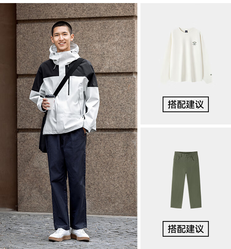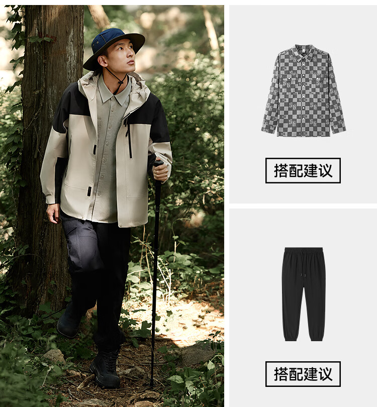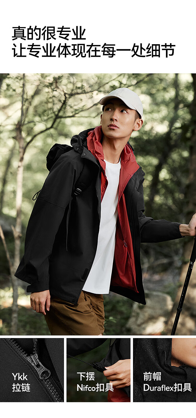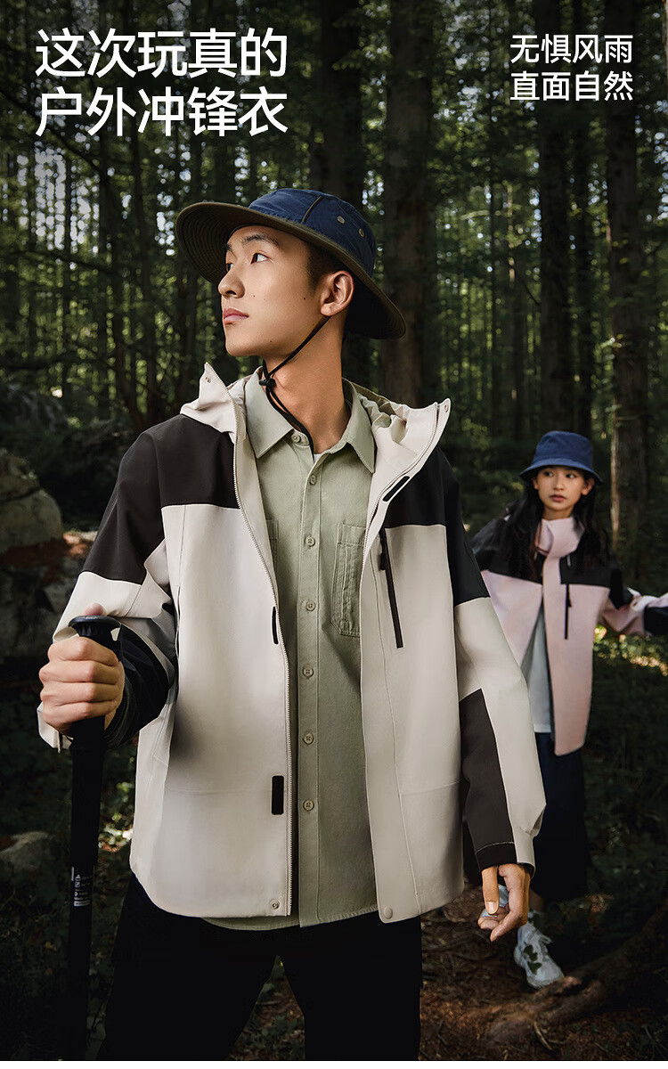 森马(Semir)冲锋衣男防风防雨徒步登山服秋连帽外套情侣款夹克102524108201