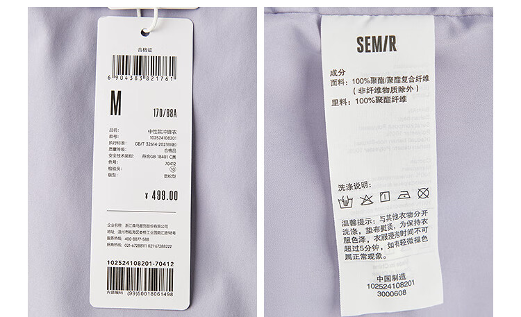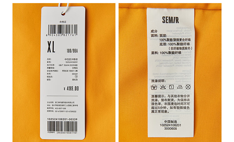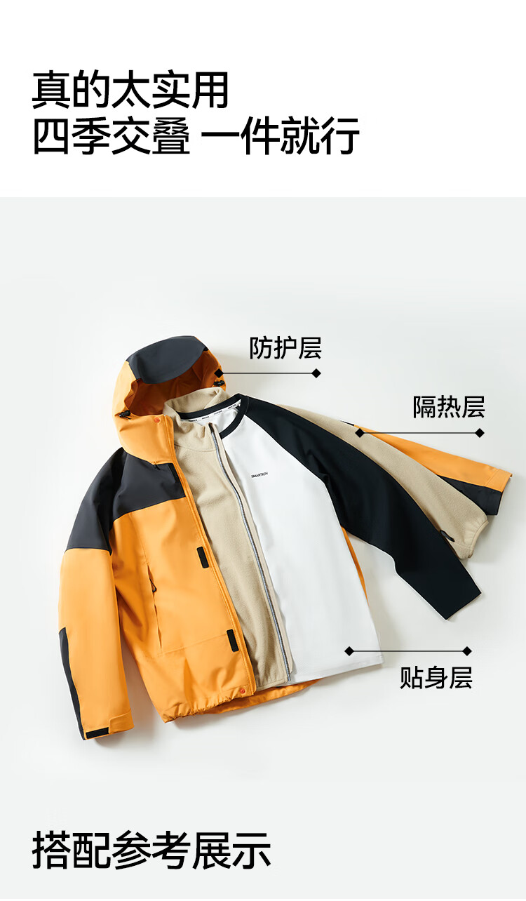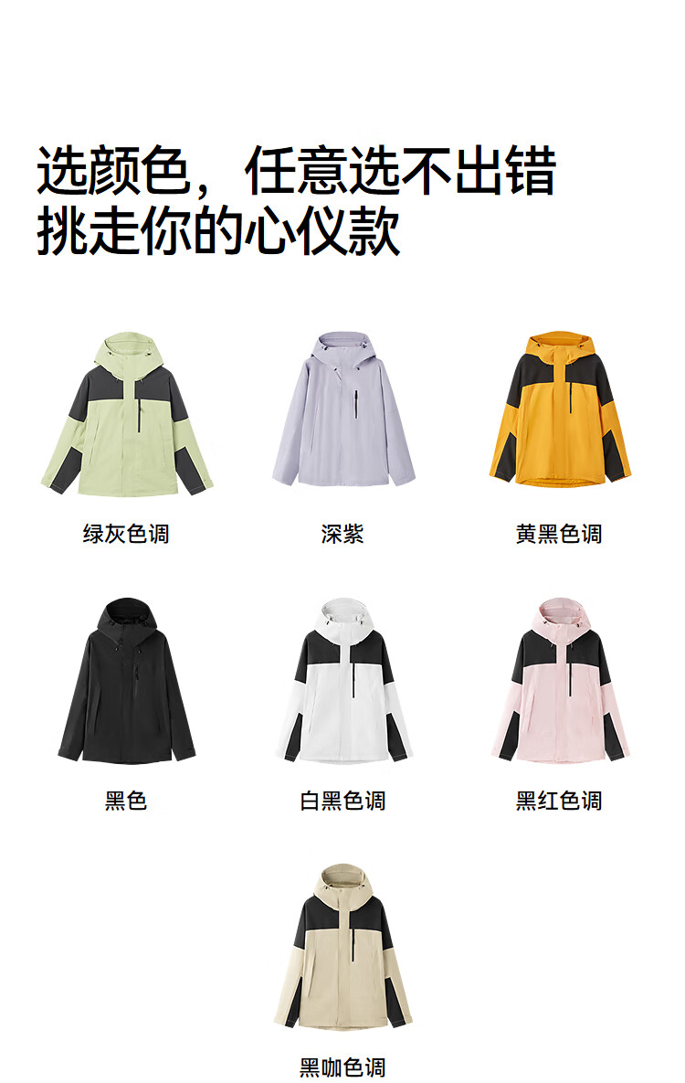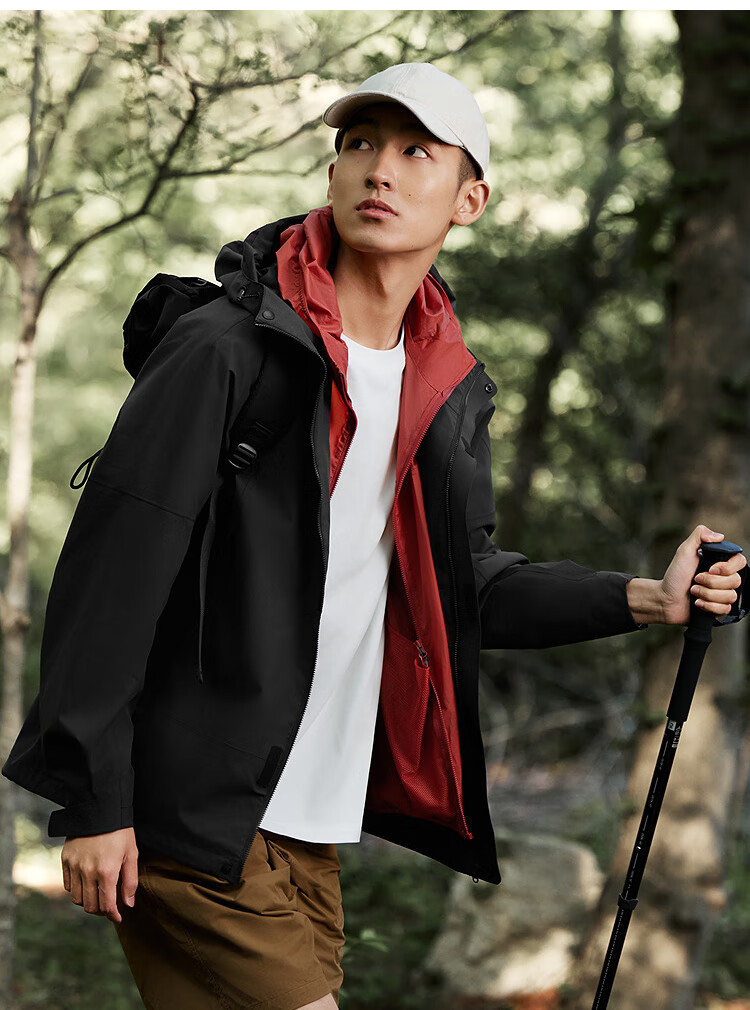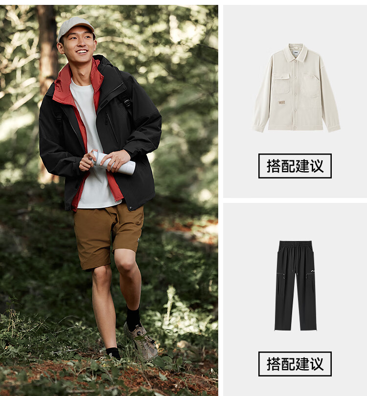 森马(Semir)冲锋衣男防风防雨徒步登山服秋连帽外套情侣款夹克102524108201