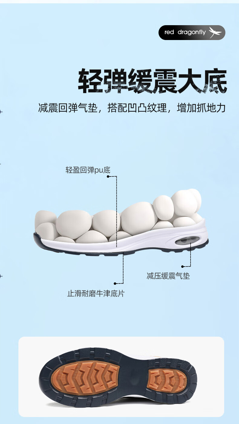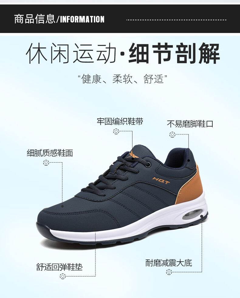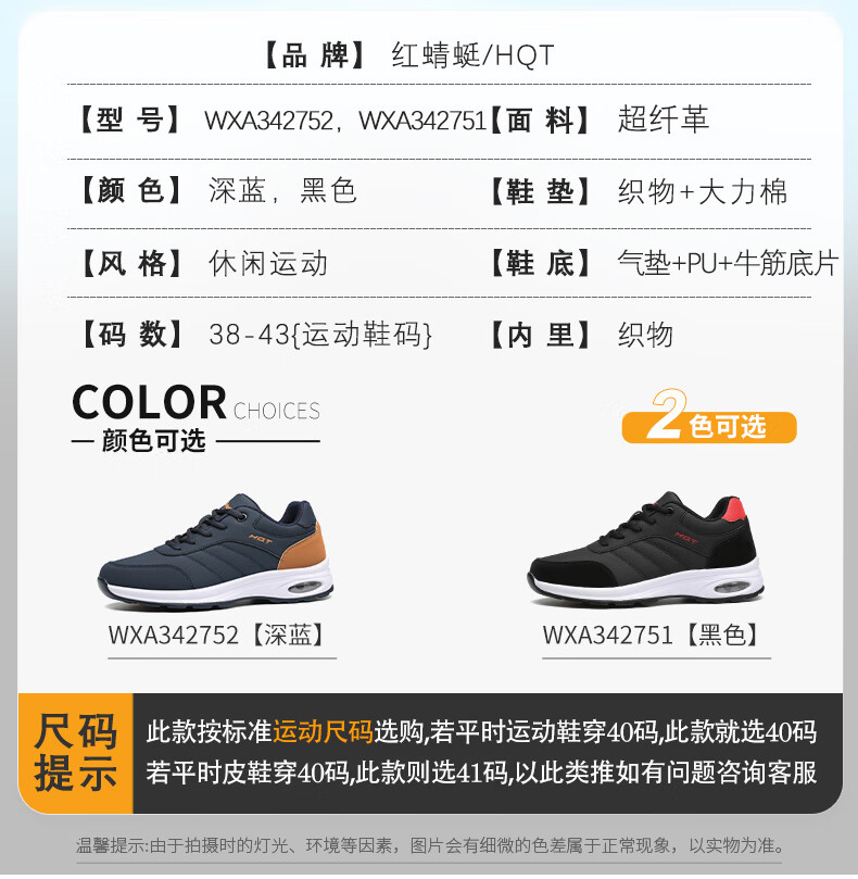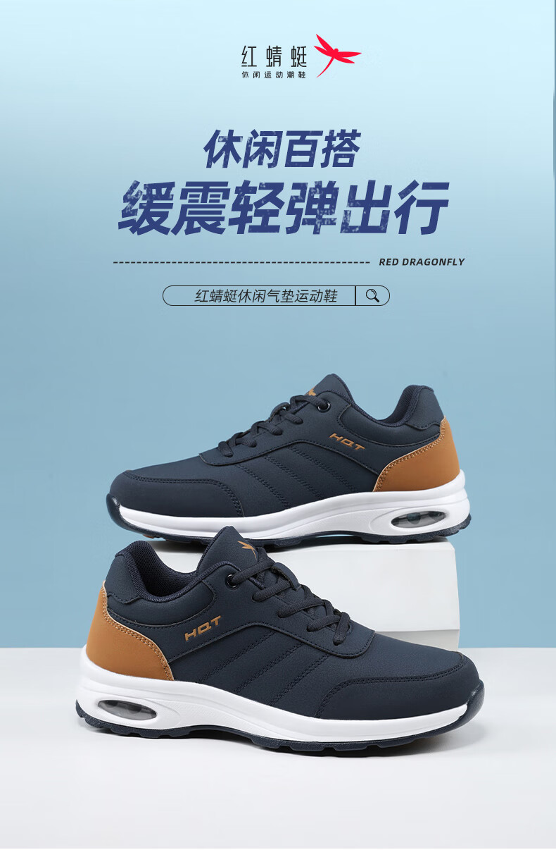 红蜻蜓男士休闲鞋气垫增高运动鞋百搭旅游鞋软底男鞋WXA342752深蓝43