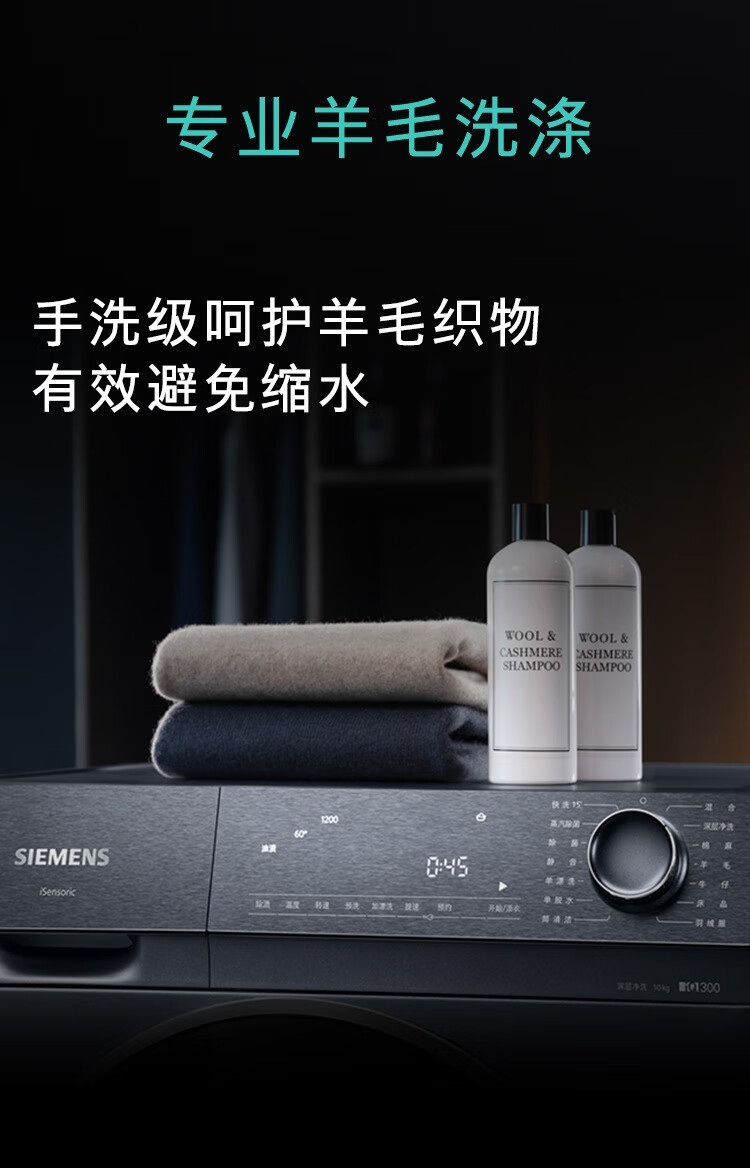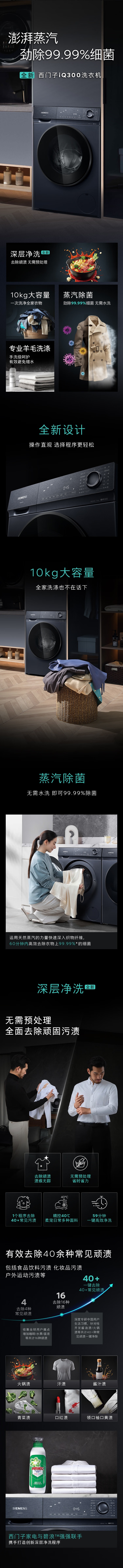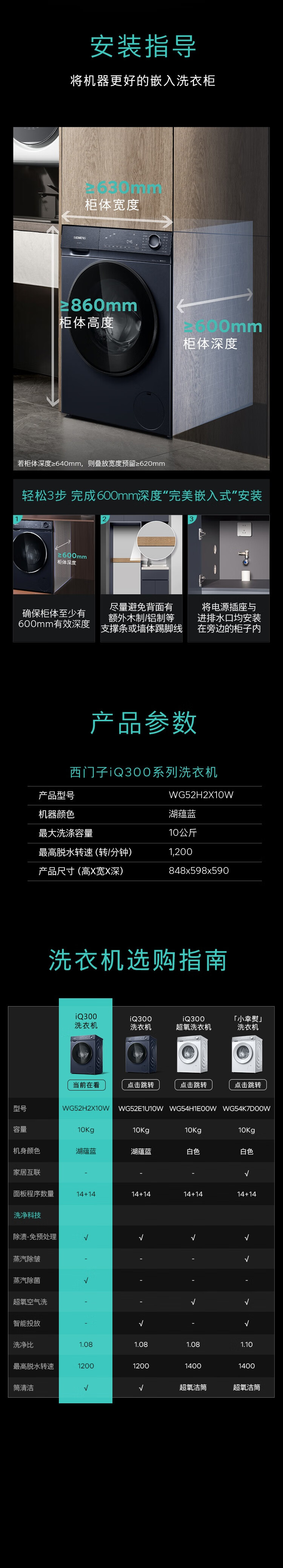 西门子(SIEMENS)小晶钻plus深层净洗 10kg滚筒洗衣机全自动 深层净洗 蒸汽除菌 羊毛洗 湖蕴蓝 补贴 WG52H2X10W