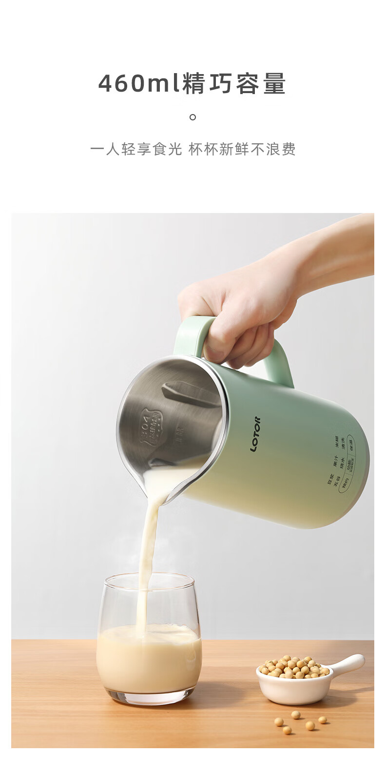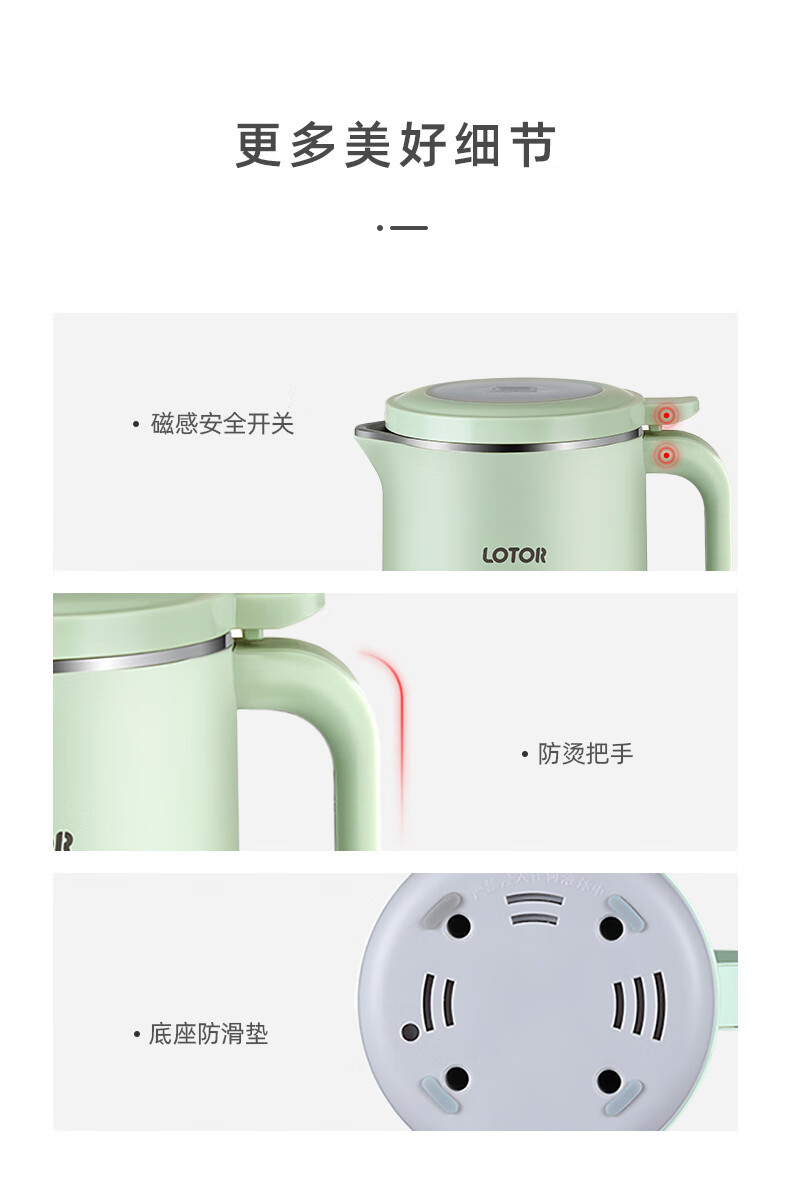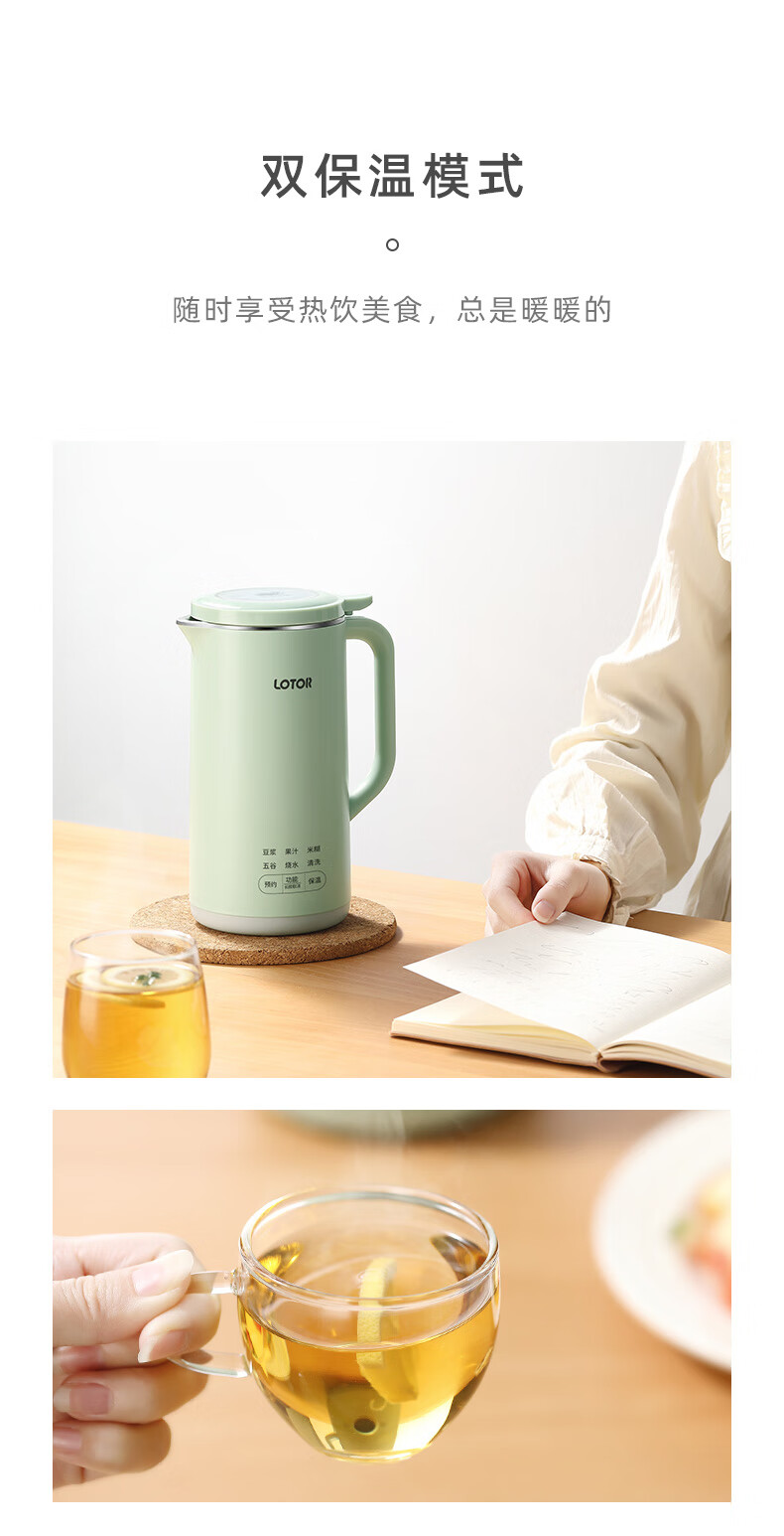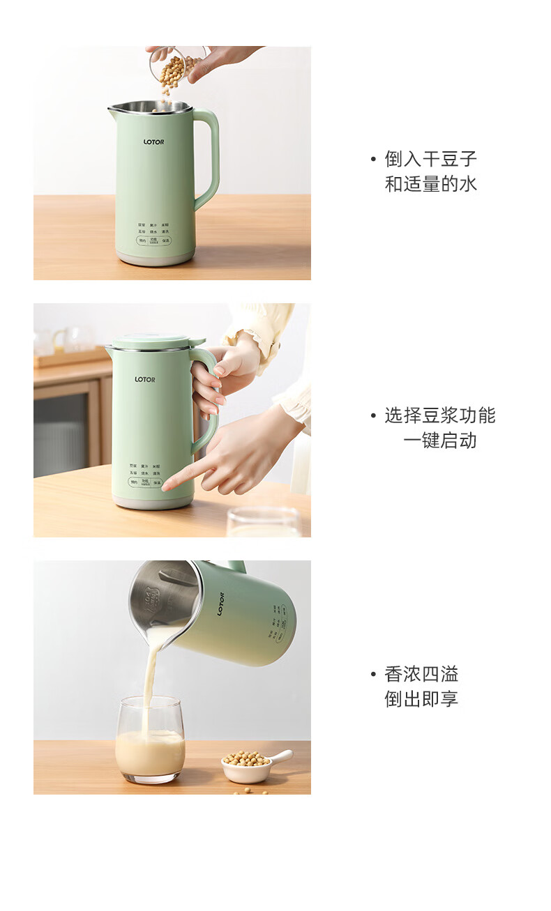 LOTOR迷你豆浆机家用小型破壁机五谷杂粮全自动免过滤1-2人食3米糊榨汁机 绿色 0.46L 标准款