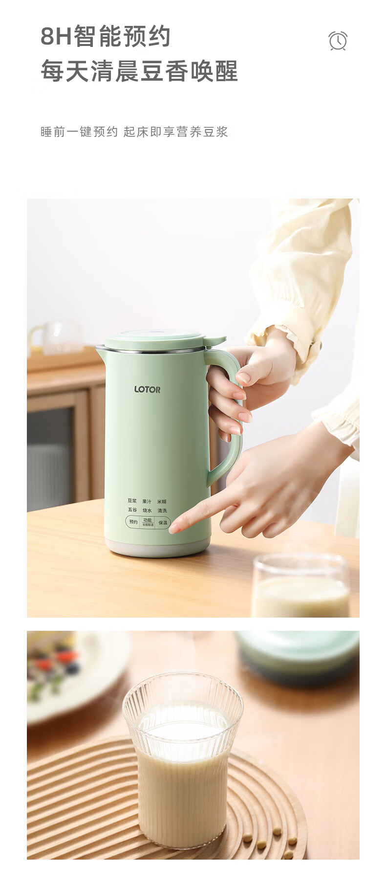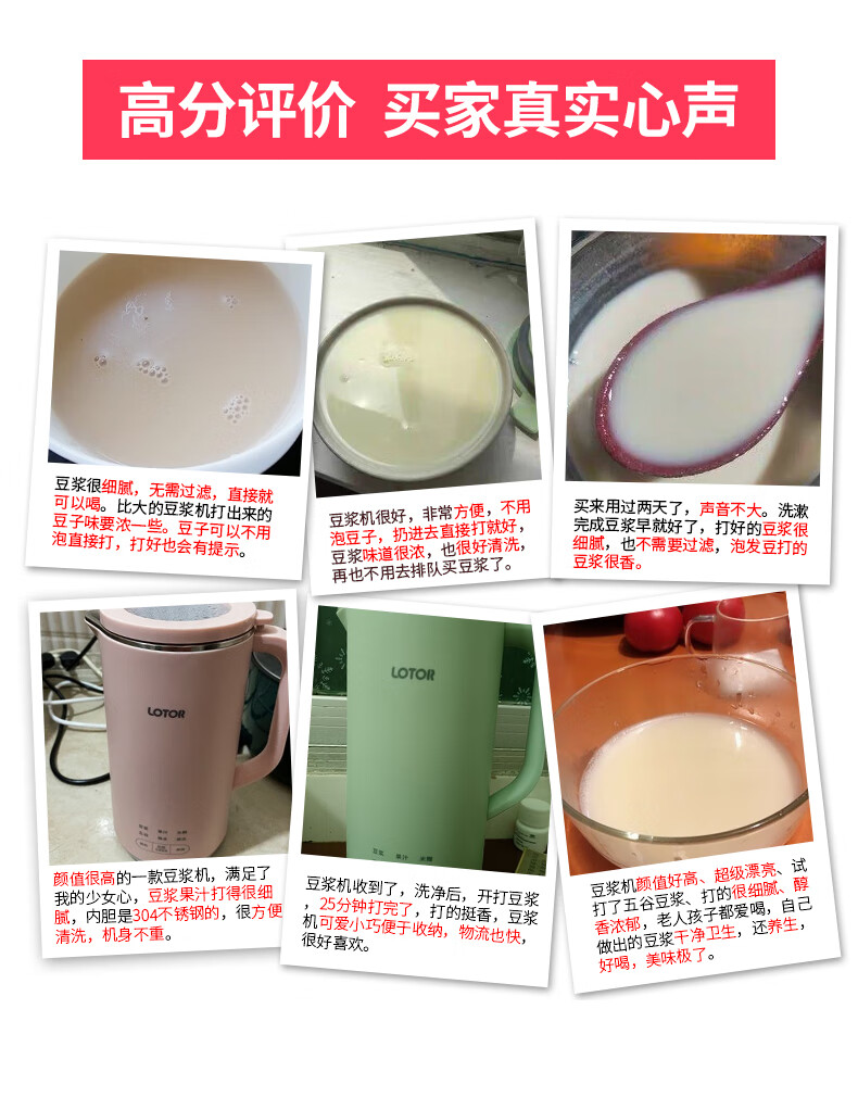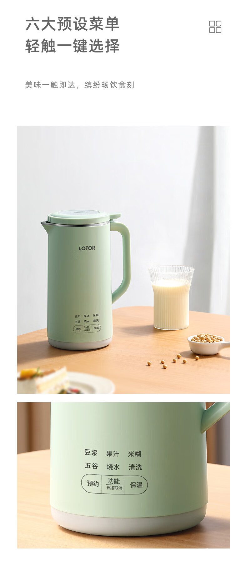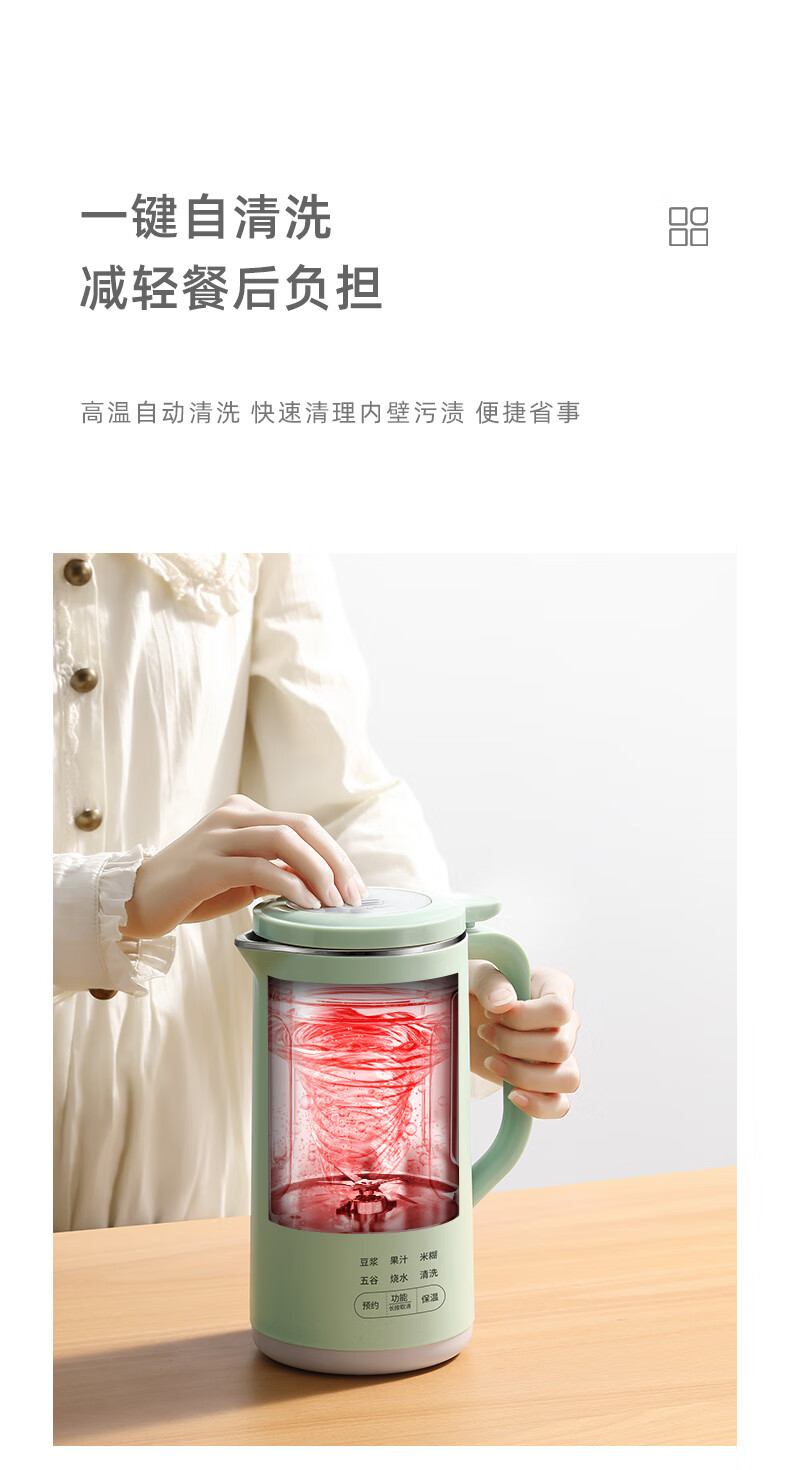 LOTOR迷你豆浆机家用小型破壁机五谷杂粮全自动免过滤1-2人食3米糊榨汁机 绿色 0.46L 标准款