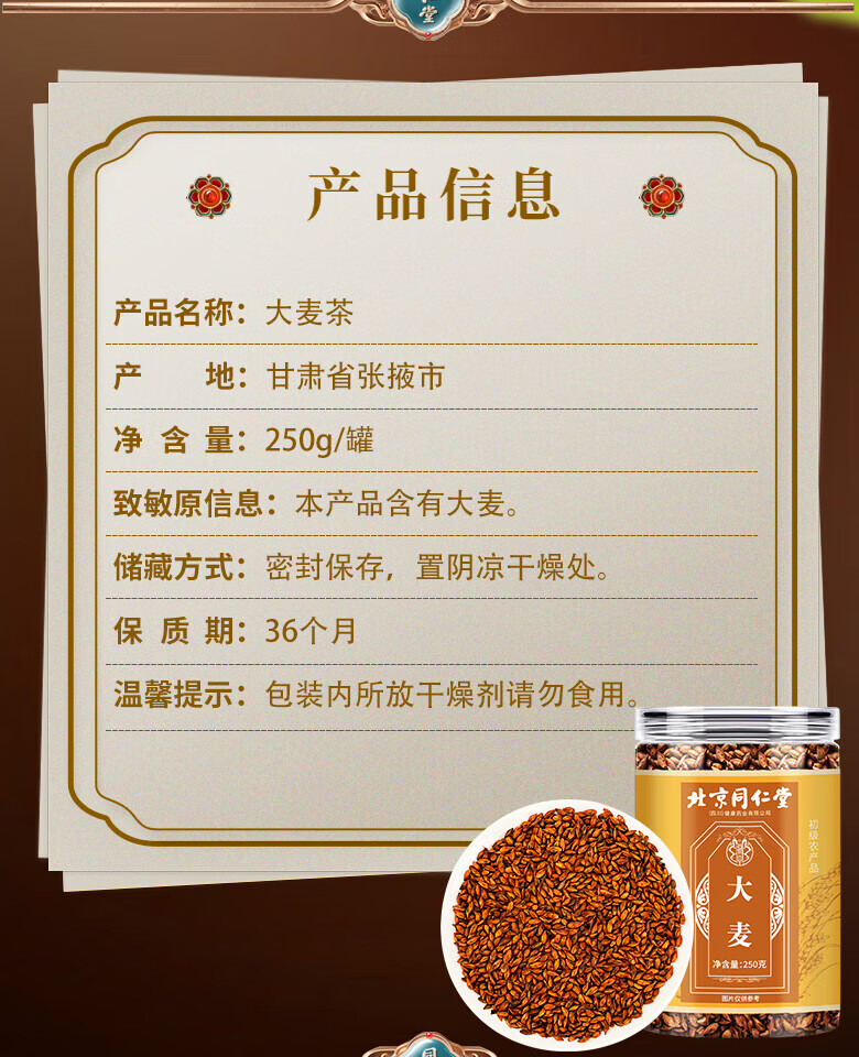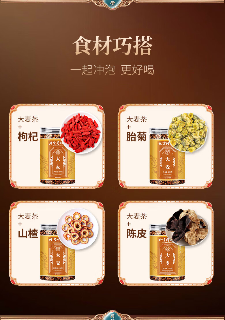 朕皇北京同仁堂浓香型大麦茶烘焙型五谷养生花草茶煮泡水回奶宝断奶 【1盒装】250g/盒