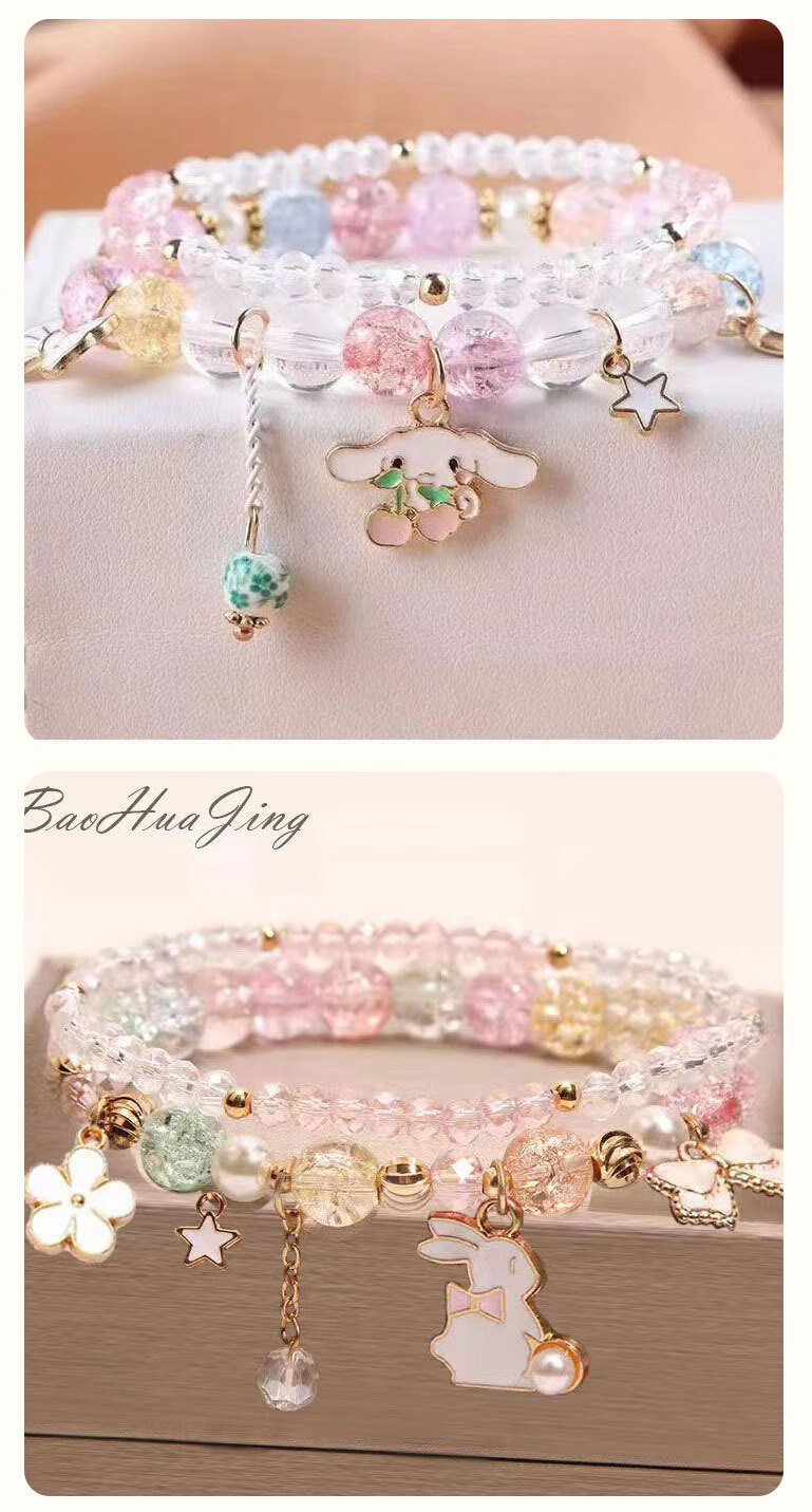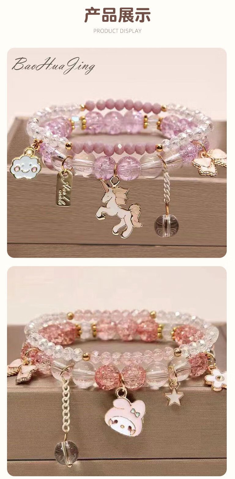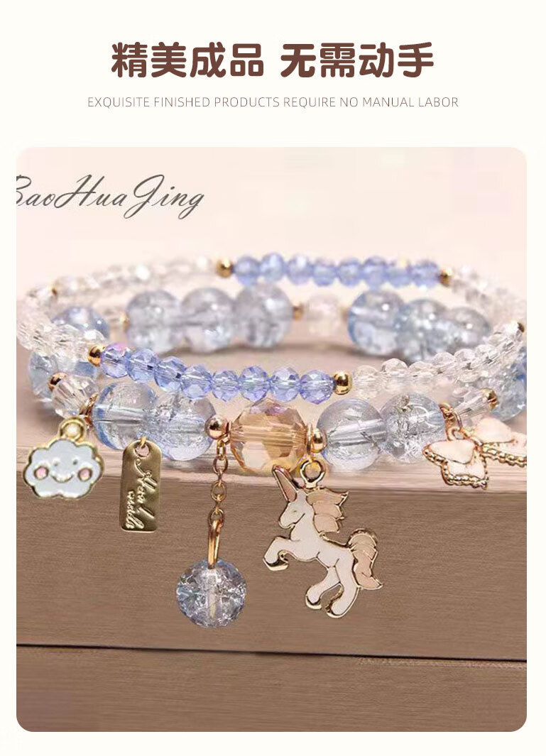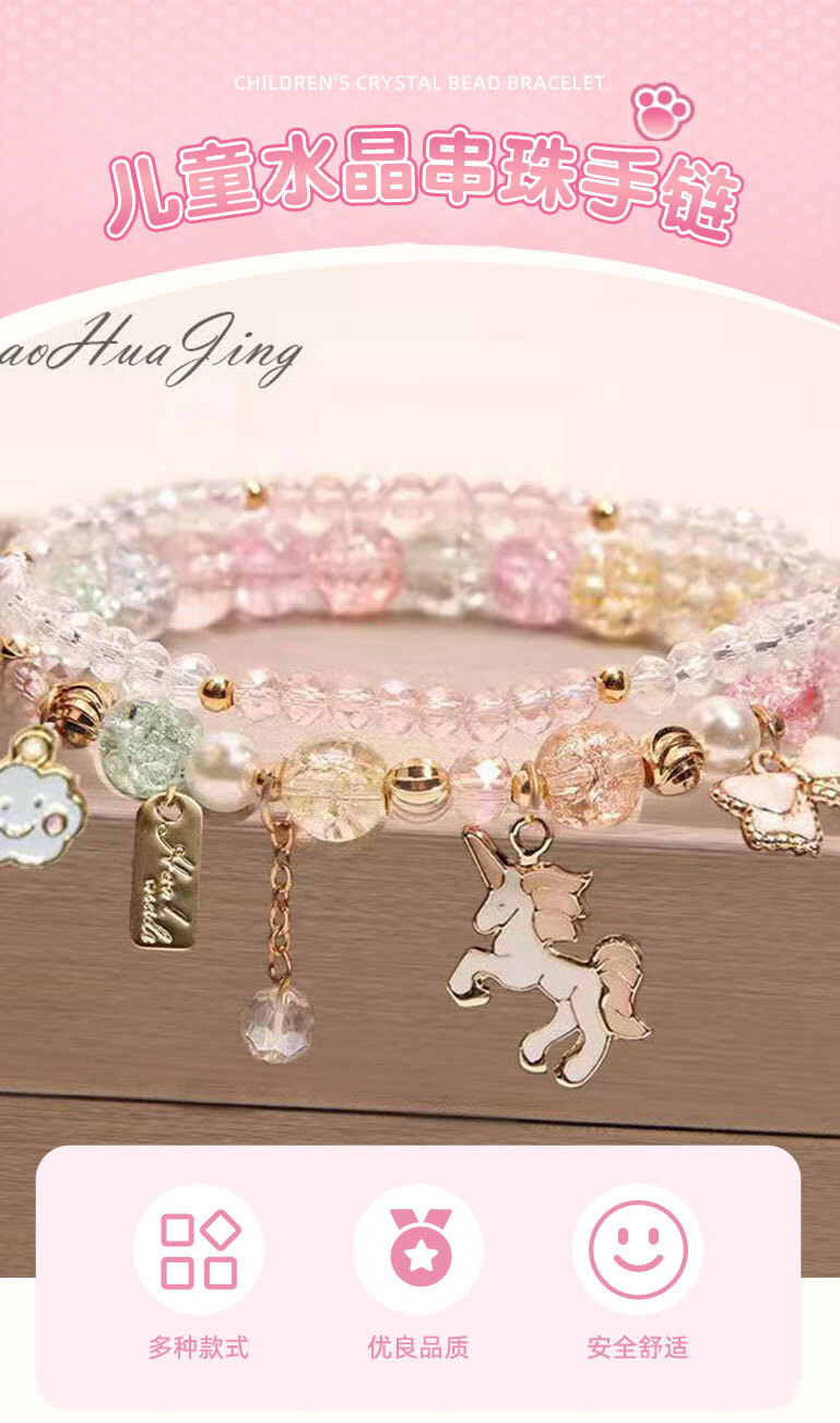 【优选】小女孩手串手饰手镯儿童手链串珠水晶女可爱学生闺蜜女童 彩色独角兽