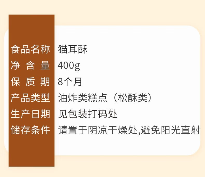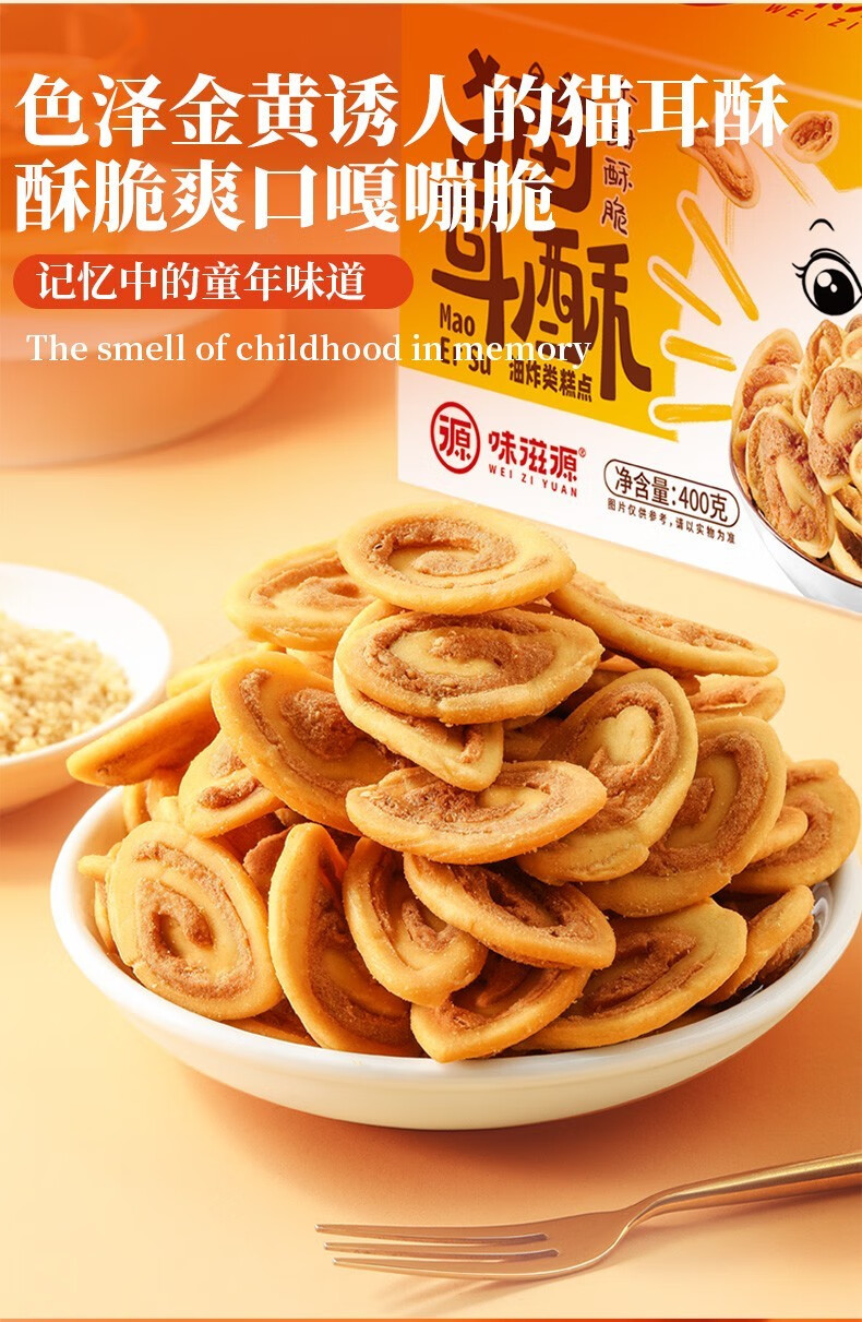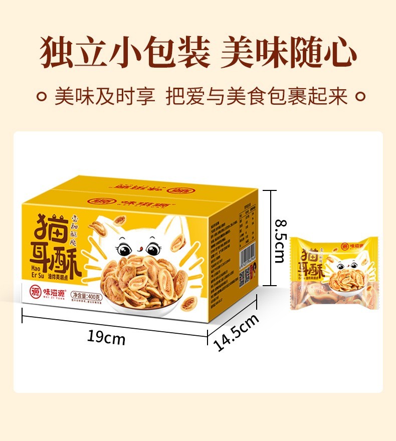 味滋源 猫耳朵 怀旧吃货零食小吃猫耳酥网红大礼包整箱休闲食品 猫耳朵 400g/箱 2件