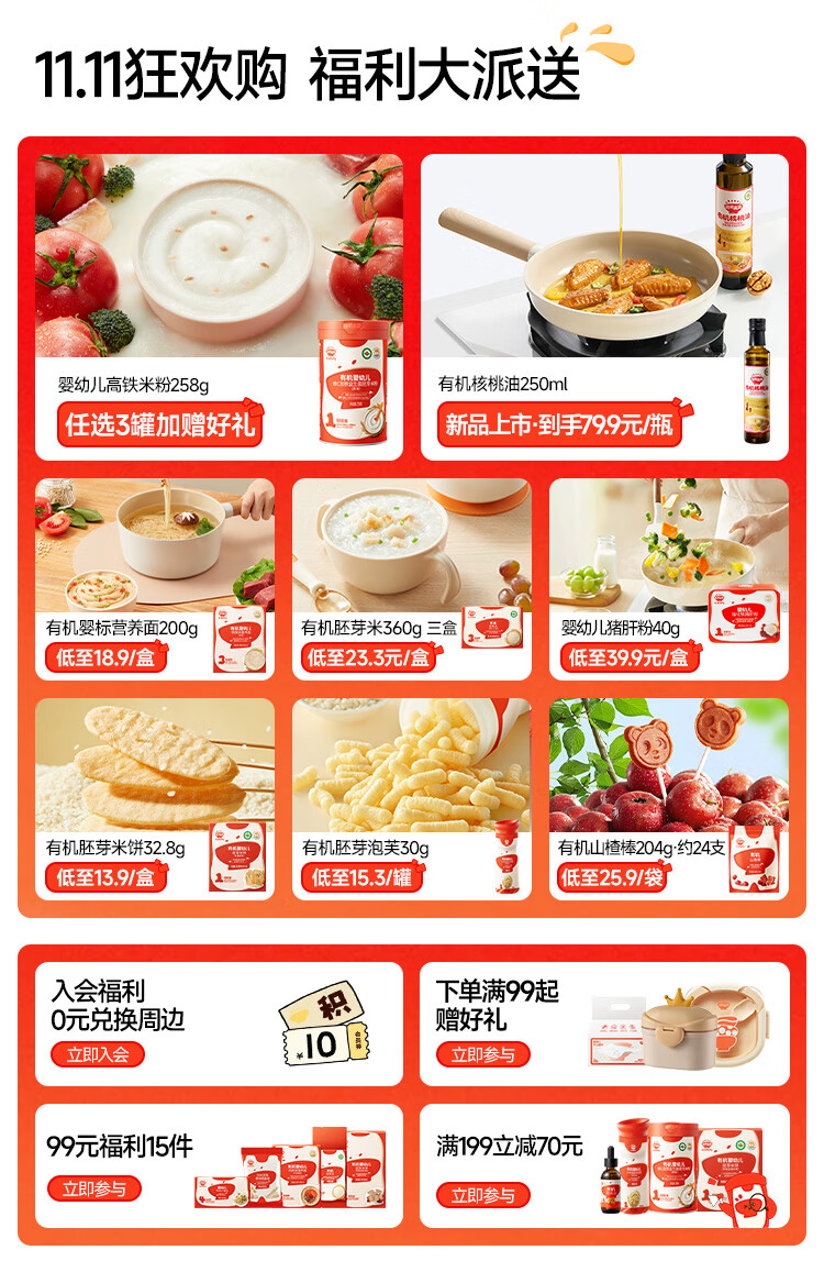 秋田满满有机婴儿面条【200g*3】组合装宝宝面条 原味+鳕鱼+牛肉番茄