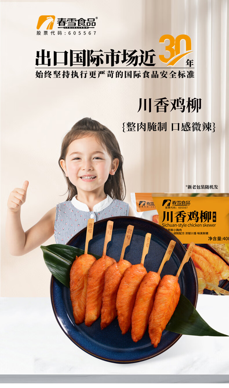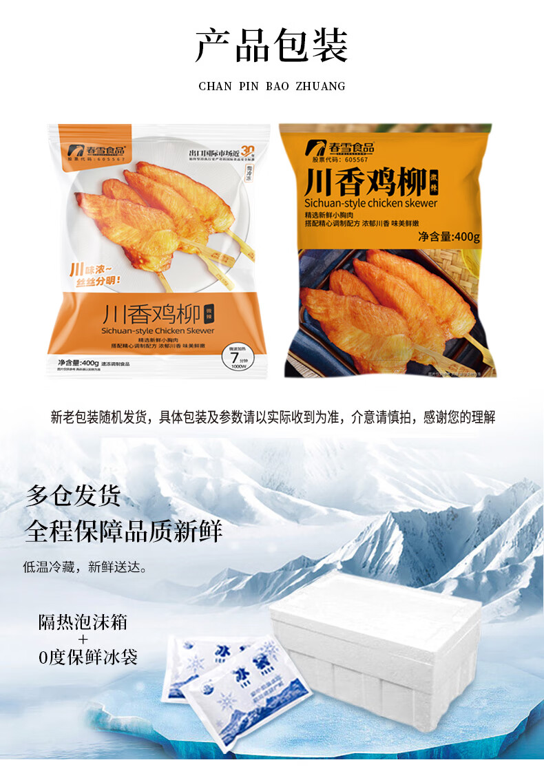 春雪食品 川香鸡柳 400g 无骨里脊肉块烧烤油炸串小吃速食空气炸锅食材