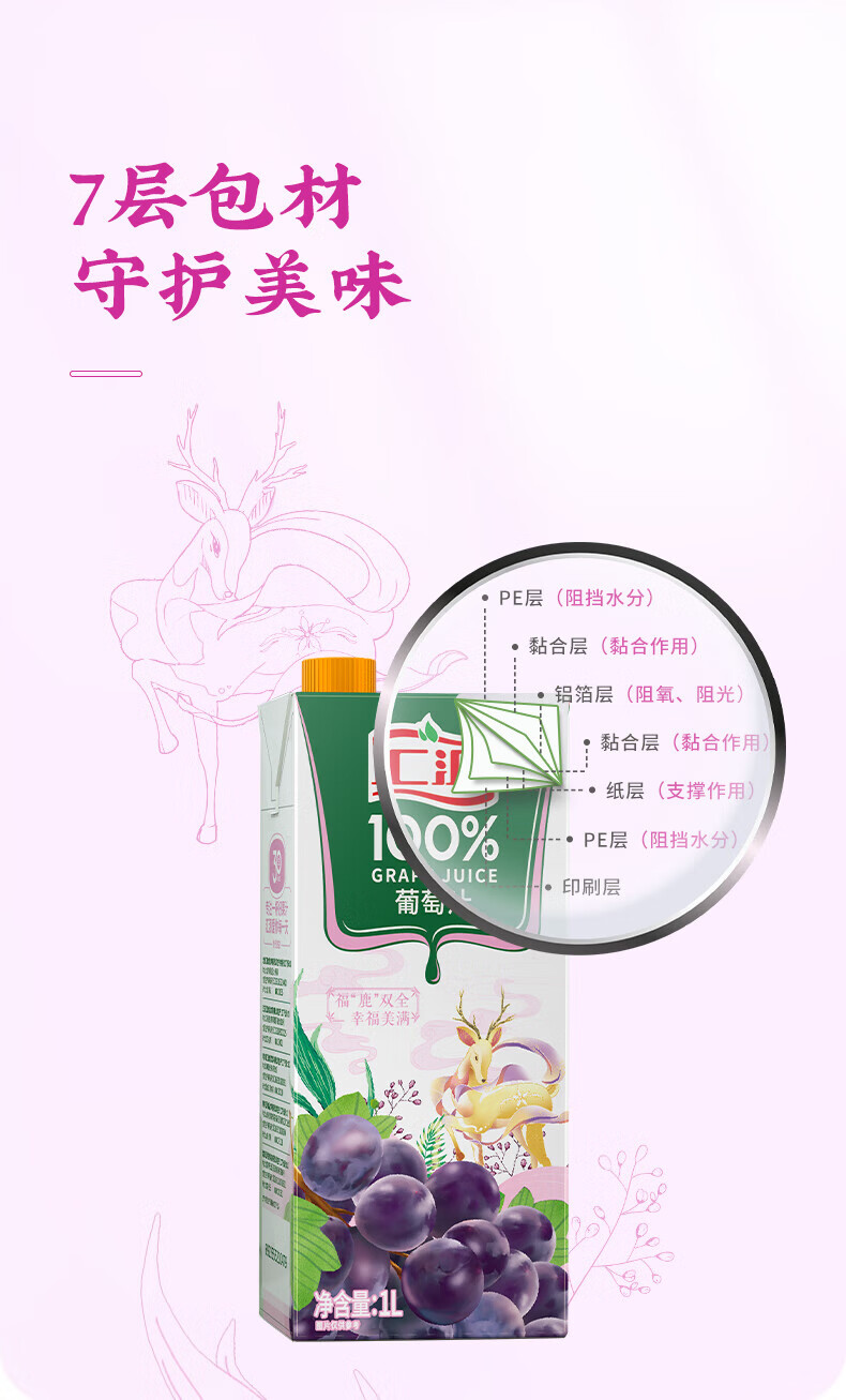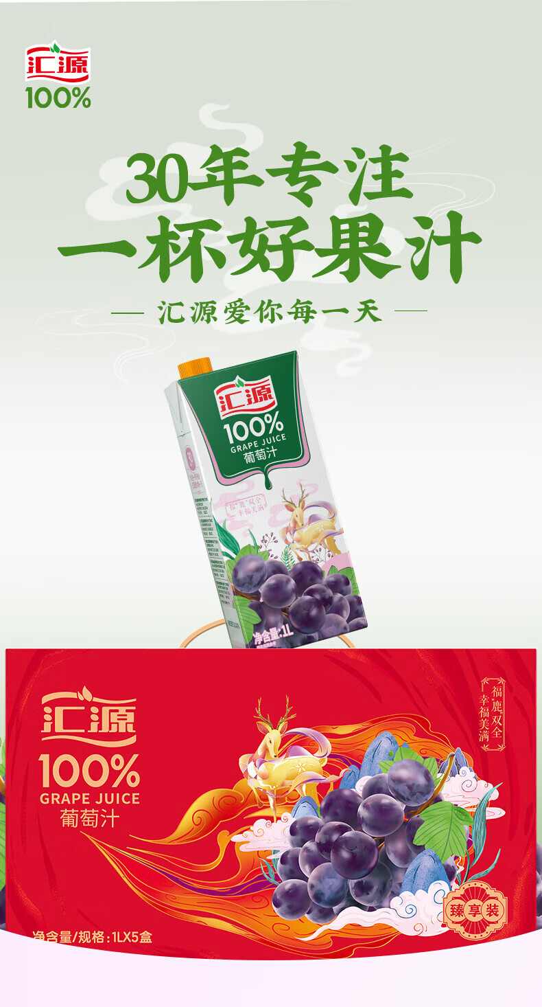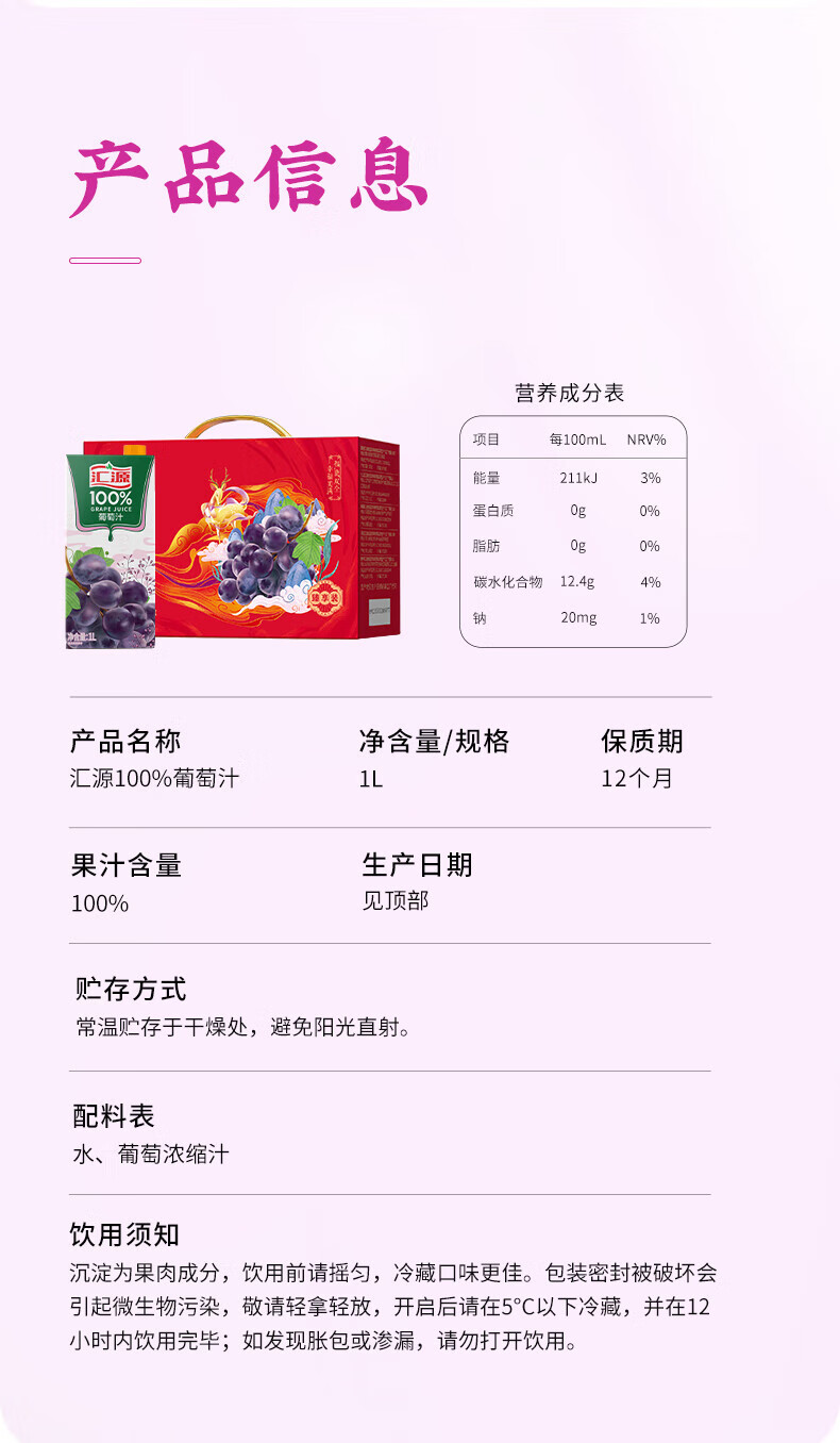 汇源100%葡萄汁1L果汁酸甜好喝【临期清仓】